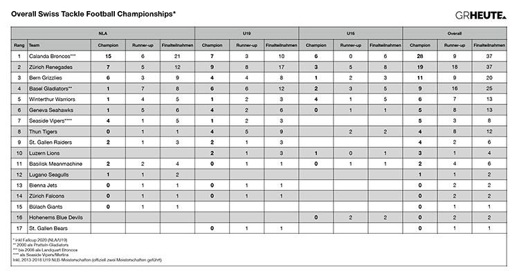 Alltime-Tackle-Football-Statistiken der Schweiz
